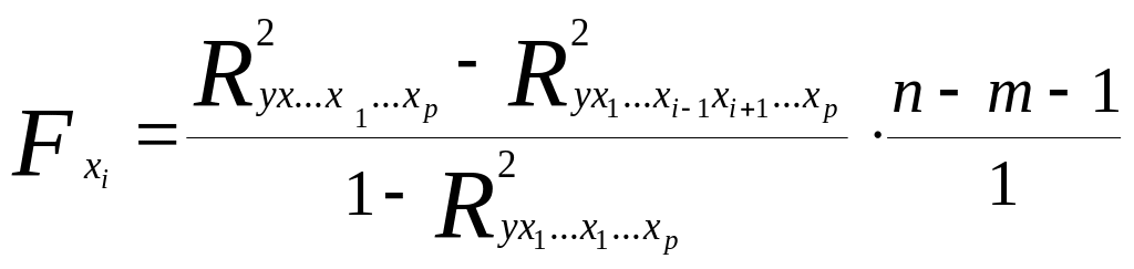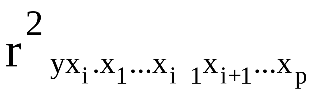 Если величина частного F-критерия выше табличного значения, то это означает одновременного не только значимость рассматриваемого коэффициента регрессии, но и значимость частного коэффициента корреляции. Существует взаимосвязь между квадратом частного коэффициента корреляции и частным F-критерием, а именно: