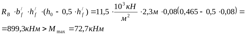 При подборе нижней продольной арматуры за расчетное сечение балки принимают тавровое сечение, а при подборе верхней арматуры (и пролетной, и опорной) - прямоугольное сечение с шириной равной ширине ребра, так как полка находится в растянутой зоне и в работе балки не участвует.
