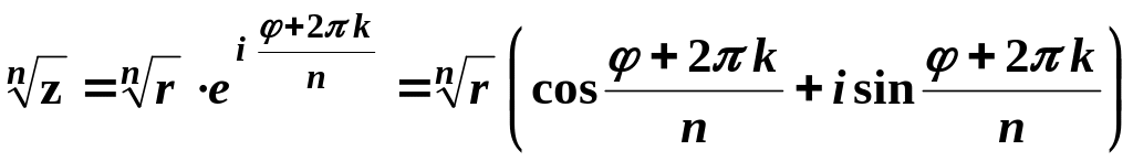 Коренем -го степеня з комплексного числа називається таке число, -ий степінь якого дорівнює . Обчислення кореня виконується за формулою