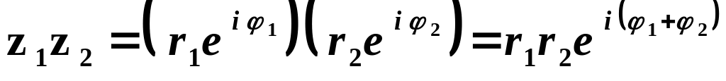Якщо комплексні числа записані у показниковій формі, то дії множення, ділення та піднесення до натурального степеня виконуються за правилами