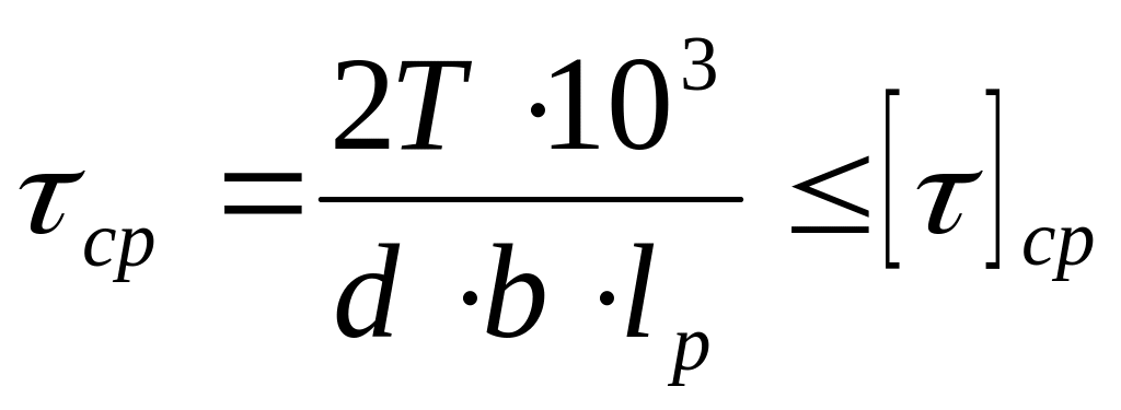 Критерием работоспособности шпоночных соединений является прочность Шпонки выбирают из таблиц стандартов в зависимости от диаметра вала с последующей проверкой на прочность. Основным расчетом шпоночных соединений является расчет на смятие. Расчет стандартных шпонок на срез чаще всего не производят, т. к. стандартные шпонки имен размеры b и А, которые подобраны так, что нагрузку соединения ограничивают напряжения смятия, а не среза.