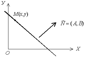 Вектор n (А,В) ортогонален прямой, числа A и B одновременно не равны нулю.