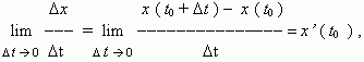 отсюда, v ( t0 ) = x’ ( t0 ) , т.e. скорость – это производная координаты по времени. В этом и состоит механический смысл производной. Аналогично, ускорение – это производная скорости по времени: a = v’ ( t ).