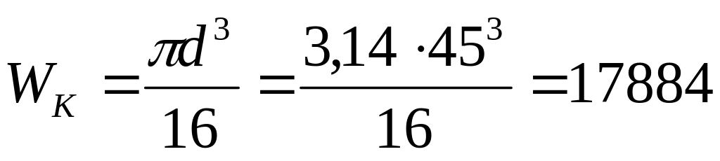 где Wк — момент сопротивления при кручении, мм3; для сплошного круглого сечения диаметром d