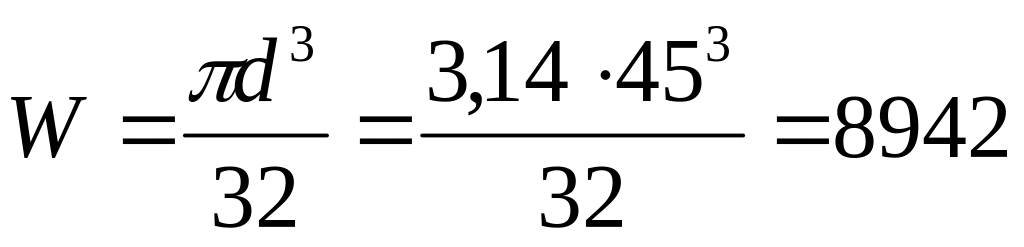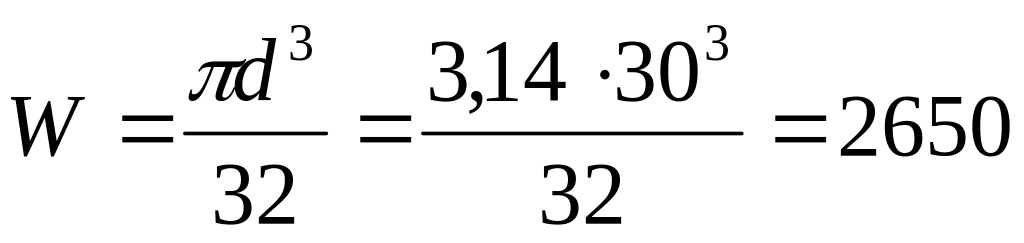 где W — момент сопротивления при изгибе, мм3; для сплошного круглого сечения диаметром d