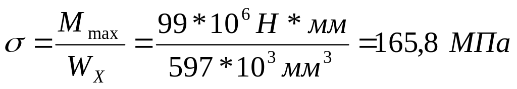 В соответствии с ГОСТ 8239-89 принимаем сечение из стального двутавра № 33 с Wх=597 см3. Имеем перенапряжение:
