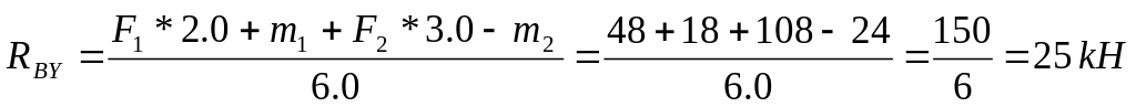 М3=F1*5.0+m1+RАУ*3,0=120+18-39=99 кНм;