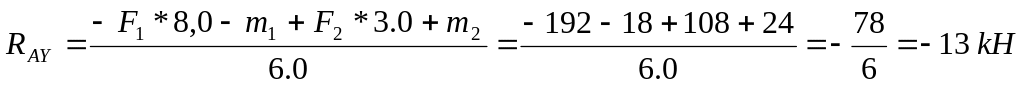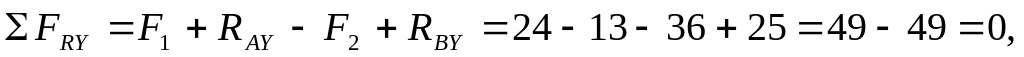 Проверяем правильность определения опорных реакций, составляя сумму проекций всех сил на ось У: