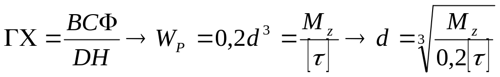 Производим проектный расчёт на прочность при кручении. Формула расчёта: