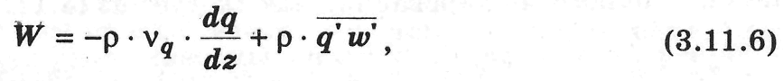 Подставляя (3.11.1) в уравнения Навье–Стокса и осредняя их, получим уравнения Рейнольдса, из которых для потоков тепла и влаги в приводном слое следуют выражения: