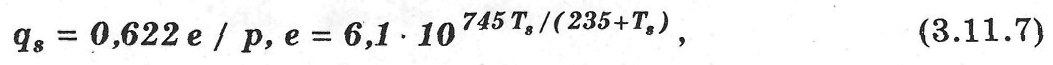 Величина насыщающей удельной влажности qs может быть выражена через температуру испаряющей поверхности, например, по формуле Магнуса: