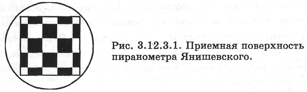 Для измерения потоков суммарной, рассеянной и отраженной лучистой энергии используются пиранометры. В нашей стране наиболее распространены термоэлектрические пиранометры системы Янишевского, приемная поверхность которых представляет систему шахматно или радиально расположенных и последовательно соединенных манганин-константановых термопар, «горячие» спаи которых зачернены сажей, а «холодные» окрашены в белый цвет магнезией. Приемная поверхность закрыта от непосредственного воздействия ветра полусферическим стеклянным колпаком.
