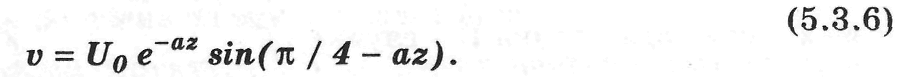 Из (5.3.6) далее следует, что скорость течения уменьшается с глубиной, а •поток его отклоняется все более и более вправо. На некоторой глубине скорость оказывается направленной в сторону, противоположную вектору скорости на поверхности. Это происходит на глубине z = π/a, определяющейся коэффициентом трения. Ее называют глубиной трения и обозначают буквой D: