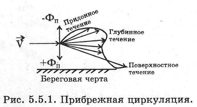 Рассмотрим очень распространенное движение морской воды, происходящее у берегов и связанное со сгонно-нагонными дрейфовыми течениями, создающими или подъем уровня у берега, или понижение его. Эти явления в той или иной мере наблюдаются практически на любом участке береговой черты и отличаются лишь по интенсивности и времени действия. Они могут быть вызваны сгонными или нагонными ветрами, регулярными бризами или муссонами, постоянными пассатами. Так например, у восточных берегов континентов в тропической области всегда имеет место нагон воды, а у западных — сгон.
