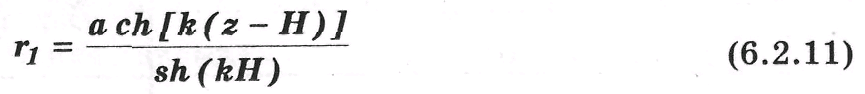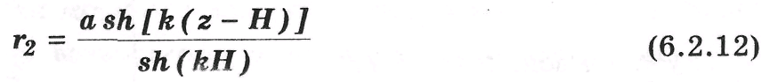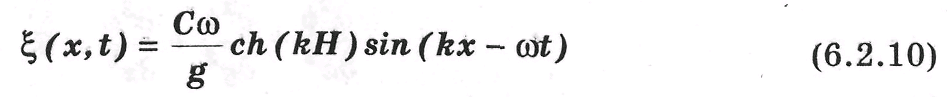с амплитудой a = Cω ch(kH)/g (здесь ch(kH) — гиперболический косинус. Напомним, что ch(x) = (exp(x) + ехр(-х))/2 и гиперболический синус sh(x) = (ехр(х) – ехр(-х))/2).