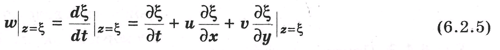 и вертикальной составляющей скорости на свободной поверхности, т. е. при z = ξ: