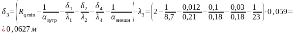 Найдём толщину утеплителя (базальтовая вата):