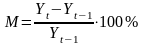 Экономический рост представляет собой долговременное увеличение объема реального ВВП как в абсолютных показателях, так и в расчете на душу населения. Темпы экономического роста (M) выражаются в процентах и обычно подсчитываются за год как отношение разницы между реальным ВВП в рассматриваемом и в предыдущем периодах к реальному ВВП в предыдущем периоде: