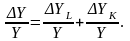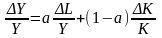 Рассмотрим производственную функцию с точки зрения того вклада, который делает каждый фактор в приращение ВВП: ∆YL – приращение за счет числа занятых и ∆YK – за счет увеличения капитала: