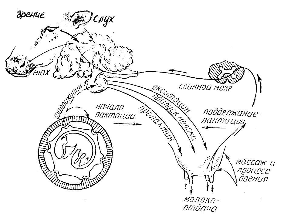 Особая роль в выведении молока отводится коре головного мозга, центру условнорефлекторной реакции, которые вырабатываются у животных на различные раздражители.