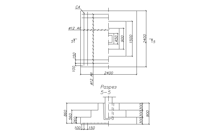 Схема армирования фундамента колонн показана на рисунке 5.1