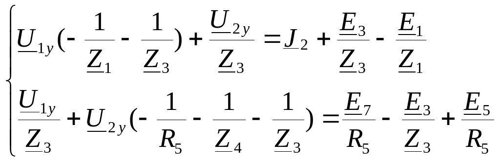 Решив эту систему относительно узловых напряжений, подставляем полученные значения в формулы нахождения токов ветвей через узловые напряжения. Можно сделать смену знаков в уравнениях.