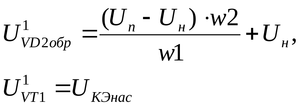 В течение tвосс.обр VD2 UК.VTUw2+UVD3. Если tвосс.обр VD2 или > времени спада tcп тока, то на Vt выделится незначительная мощность, а его рабочая точка не выйдет из ОБР. Это способ снижения потерь мощности на транзисторе при выключении. Выбор VD2 необходимо производить с учетом параметров и режима работы транзистора, tвосс.обр(1.2-1.5)tсп, а Uобр.maxUКЭи.