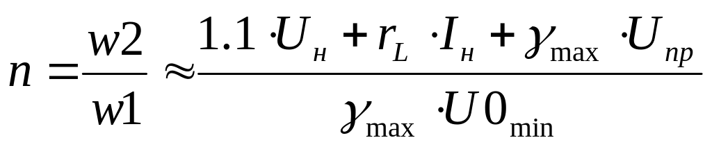 Максимальное приращение индукции и число витков w1 связаны соотношением