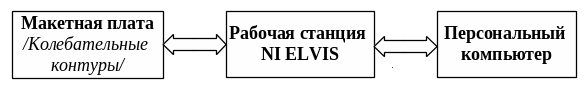 Рис. 2.10. Структурная схема экспериментальной установки для измерения АЧХ и ФЧХ колебательного контура с помощью комплекта NI ELVIS