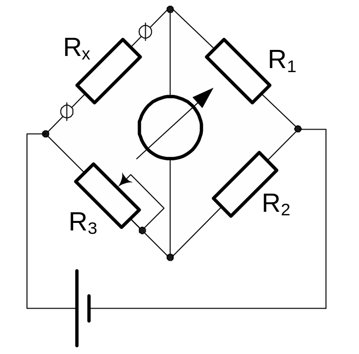 Пример: Измерение сопротивления резистора Rx с помощью уравновешенного моста.