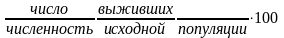 Кривая выживания представляет собой график зависимости от времени числа выживших на данный момент особей для некоторой начальной группы новорожденных. Каждому биологическому виду свойственна своя характерная кривая выживания. При построении графика по оси абсцисс откладывают относительный возраст, а по оси ординат – относительное число выживших особей или их процент от исходного числа (рис. ):