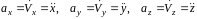 Ускорение точки характеризует быстроту изменения величины и направления скорости точки и равно первой производной вектора скорости по времени или второй производной радиуса-вектора по времени: