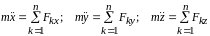 Дифференциальные уравнения движения материальной точки в проекциях на оси прямоугольной декартовой системы координат имеют вид