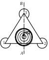 Зрительную трубу устанавливают параллельно любой паре подъемных винтов. Тремя подъемными винтами приводят пузырек круглого уровня в нуль-пункт, при этом наиболее целесообразно привести пузырек уровня двумя подъемными винтами 1 и 2 на линию АВ, а затем винтом 3 в нуль-пункт. Затем поворачиваем верхнюю часть нивелира на 180°, при этом пузырек не должен отклонять более одного деления (выходить за пределы большой концентрической окружности). |