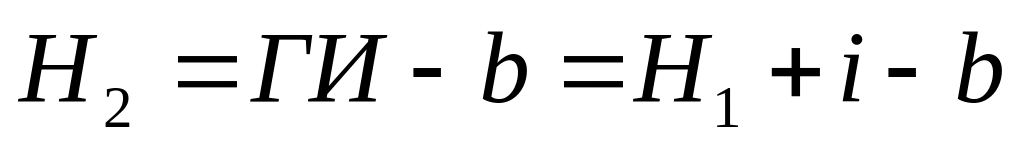 б) горизонт инструмента (ГИ) – высота горизонтального визирного луча нивелира над уровенной поверхностью. Горизонт инструмента равен отметке точки плюс отсчёт по черной стороне рейки, установленной на этой точке