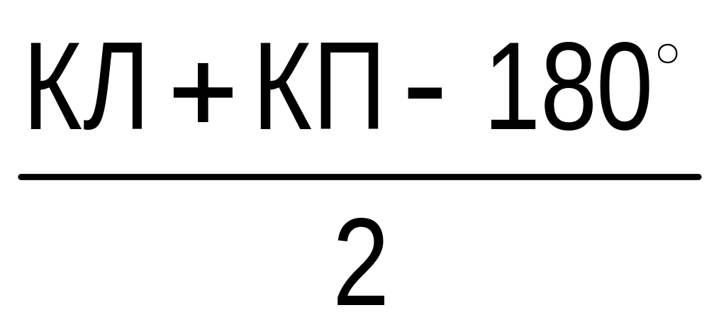 Устанавливают рабочее положение теодолита КП, наводят на точку 1, и, вращая теодолит против хода часовой стрелки, визируют на точки 3, 2 и 1. Отсчёты записывают в графу 4 снизу вверх. Вычисляют средние значения отсчётов, полученных при КЛ и КП, по формуле: