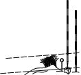 Вехи устанавливаются на следующую и предыдущую точки хода вертикально позади кола так, чтобы они находились в створе наблюдаемого направления. При измерении горизонтального угла на вехи наводят вертикальную нить сетки. Наведение выполняют строго по центру вехи так, чтобы пересечение нитей находилось в нижней ее части, т.е. как можно ближе к поверхности земли. Этим исключается погрешность за не вертикальность вехи. |