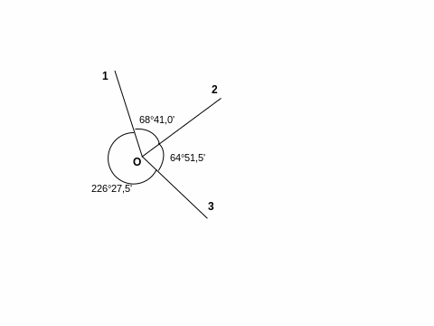 В случае, если отсчёт на правую точку меньше отсчёта на левую, к нему прибавляют 360º.