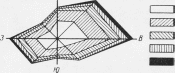 По данным наблюдений вычисляется повторяемость ветров по 8-ми румбам и градациям скоростей за интересующий период (за отдельный месяц, год или за многолетний период). Результаты обработки сводятся в таблицу, которая служит для составления розы ветров, являющейся графическим изображением распределения повторяемости ветров и их скоростей. Для построения розы ветров от центра вычерчивается восемь направлений, соответствующих восьми румбам, затем от центра в масштабе откладываются значения повторяемости по румбам и градациям скоростей в процентах. Концы векторов соединяются прямыми линиями, образующими розу ветров (рис. 15).