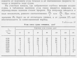 Для определения суммы углов сноса и дрейфа судна под действием течения и ветра используют многолетние данные гидрометеорологических наблюдений за направлениями и скоростями течений и ветра, действующих в районе проектируемого капала и на его отдельных участках. В качестве расчетного выбирается ветер, обусловливающий максимальный дрейф судна, однако не сильнее ветра, при котором удержание судна на курсе становится невозможным. В последнем случае нормами проектирования не рекомендуется допускать, чтобы угол сноса и угол дрейфа в сумме превышали 25°.