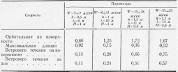 - •Орбитальные скорости и скорости течений при разных режимах ветра и полнения, м/сек
