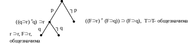 Далее q интерпретируем как F, тогда формула принимает вид Fr – тоже общезначимая формула, поэтому дальше строить поддерево не нужно.