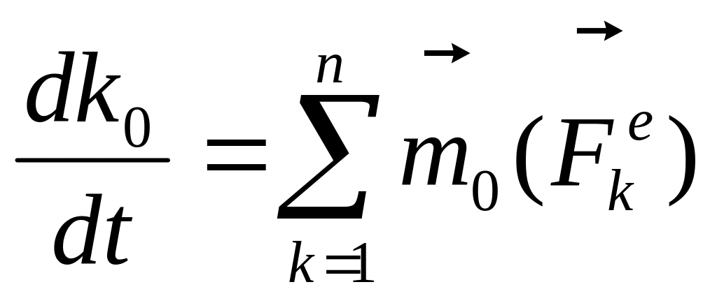 Теорема: (об изменении главного момента количеств. движения сист.) Производная по времени от главного момента количеств движения системы относительно некоторого неподвижного центра равна сумме моментов всех внешних сил системы относительно того же центра.