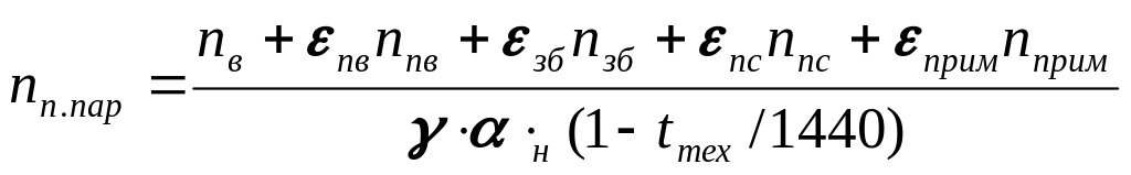 де n гр.п - потрібна пропускна (переробна) спроможність станції для вантажних поїздів без прискорених і збірних з урахуванням коефіцієнту ρ і часу tс тех .