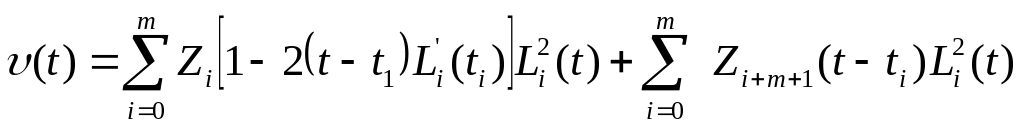 Пусть (x1,y1), (x2,y2), ..., (xn,yn) – последовательность точек, заданных на плоскости, причём xi xj , при ij. Формулу интерполяционного полинома (n-1)- степени можно представить в виде