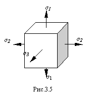 Главные напряжения обозначаются , причем . Элемент, выделенный главными площадками, изображен на рис.3.5. В зависимости от количества действующих главных напряжений различают три вида напряженных состояний: линейное, плоское и объемное.