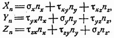 Вектор напряжения, действующий на площадке с нормалью х, представим следующим образом: