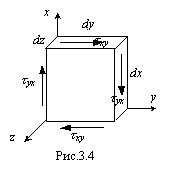 Рассмотрим мысленно вырезанный из напряженного тела параллелепипед, ребра которого ориентированы по координатным осям. Измерения его могут быть конечны, если напряженное состояние однородно, и бесконечно малы, если оно неоднородно.