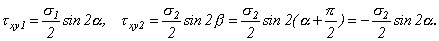От каждого из напряжений 1, 2 напряжения x1, x2 и xy1,xy2 в произвольной площадке равны