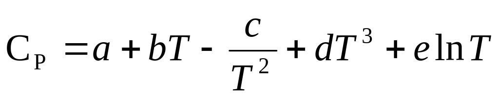 Теплоємність при ізобаричному процесі сР – задається ступеневим рівнянням